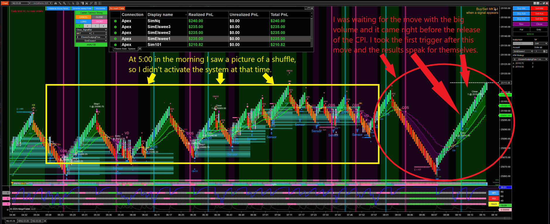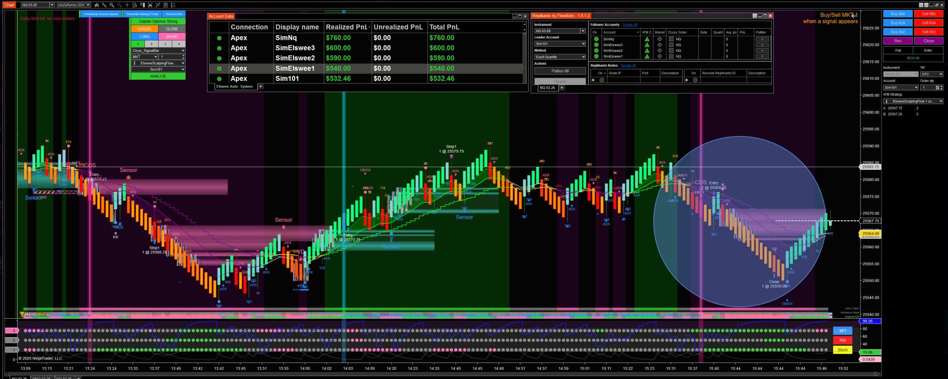 Yes, they work very well together, especially in high-volatility market conditions when execution discipline matters most.In this video below, Elswee tested the Elswee Scalping Flow Bundle together with Infinity Algo Engine$ on a real Apex evaluation account.This session fully reflects a Scaling mindset:🔹Trades were taken frequently but with structure